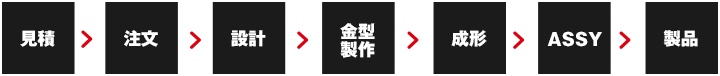 見積⇒注文⇒設計⇒金型製作⇒成形を