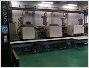 射出成形型 製品事例成形部門では、夜間も稼働する生産ラインで数百~数十万のロットに対応します。